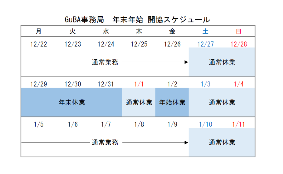 事務局オフィス 年末年始に伴う休業のお知らせ