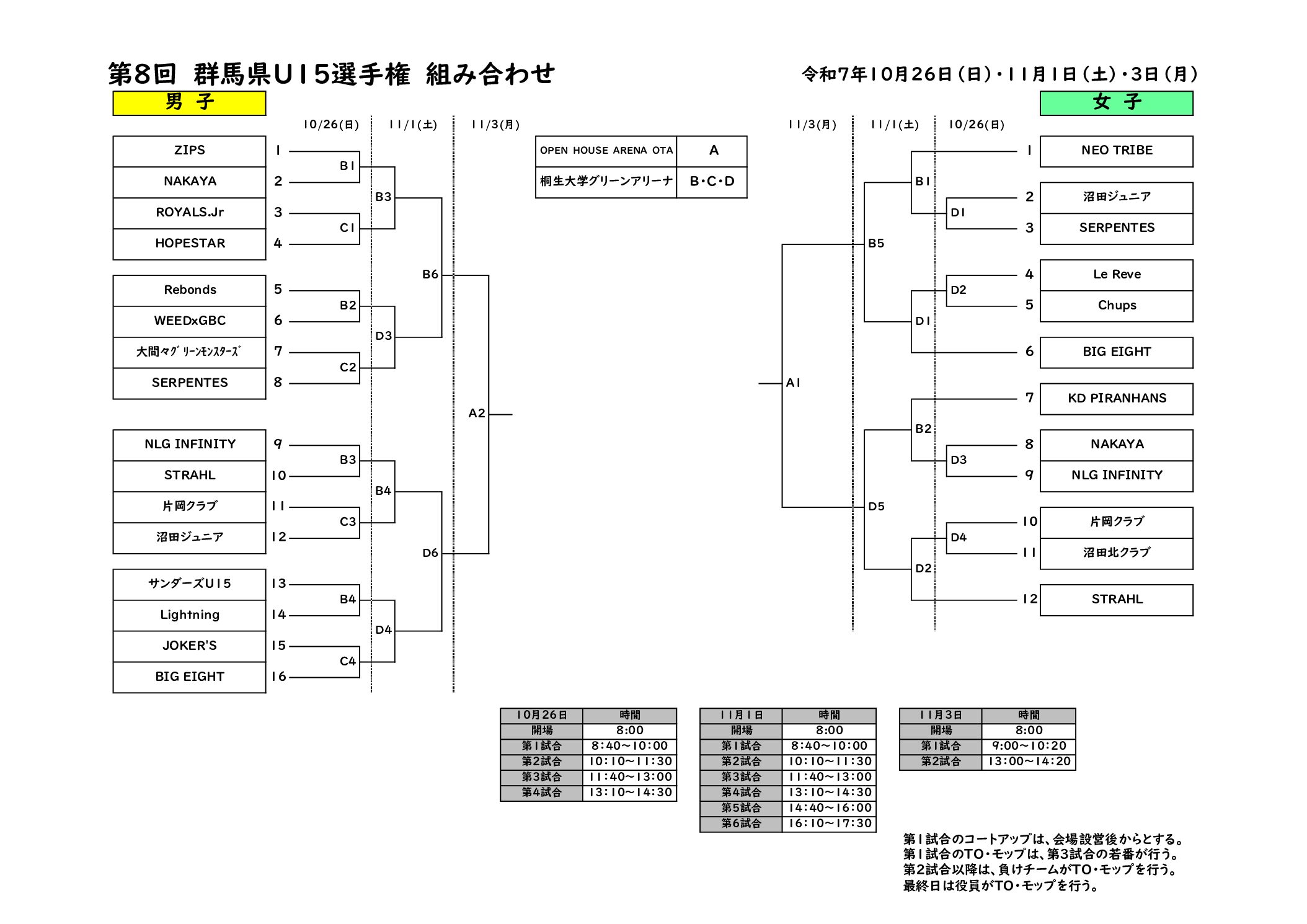 | 令和7年 11月3日(月) | 【男子決勝 女子決勝】 OPEN HOUSE ARENA OTA |
